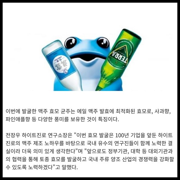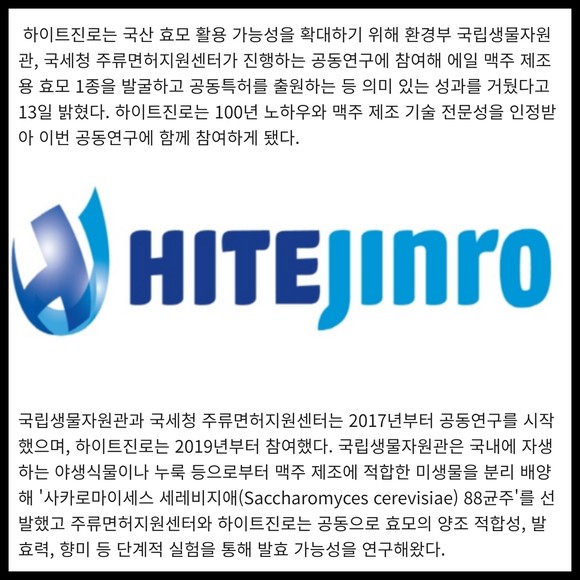 [카드] 하이트진로, 에일 맥주 제조용 효모 발굴·공동 특허 출원