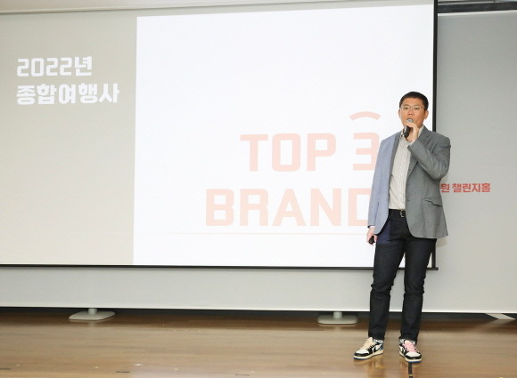 교원투어(대표이사 장동하) 여행 전문브랜드 여행이지가 19일 서울 종로구 관철동 교원 챌린지홀에서 '2022 여행이지 성장 비전 간담회'를 개최했다.