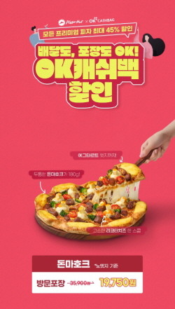 한국피자헛이 7월 한 달간 OK캐쉬백과 함께 배달 주문 고객에게는 35%, 방문 포장 고객에게는 45% 할인 혜택을 제공하는 프로모션을 진행한다.
