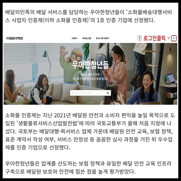 [카드] 우아한청년들, 국토부 소화물 인증제 '1호 기업' 선정