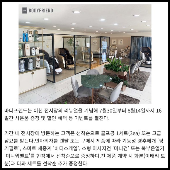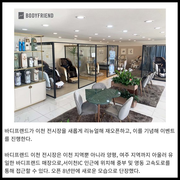[카드] 바디프랜드, 이천 전시장 리뉴얼 재오픈 기념 이벤트 진행