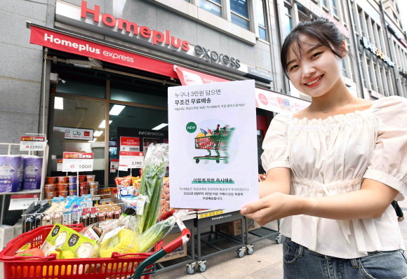 홈플러스가 홈플러스 익스프레스 온라인 '1시간 즉시배송' 서비스로 3만원 이상 구매 고객 모두에게 배송비를 받지 않기로 결정했다.