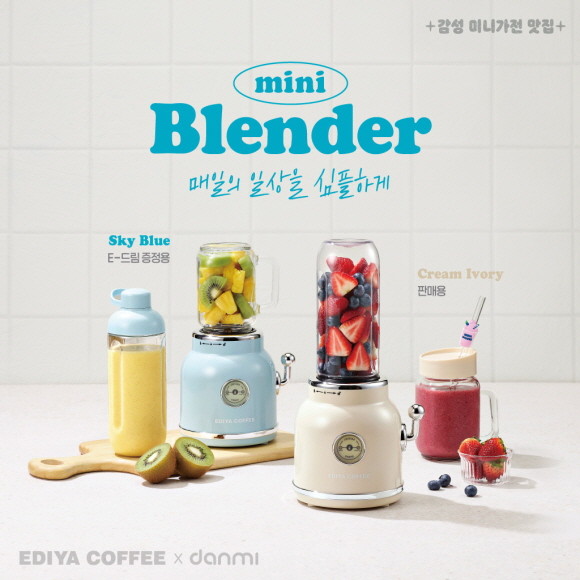 이디야커피는 이번 2차 프로모션 미션 완수 시 가정에서 손쉽게 다양한 음료 제조가 가능한 '미니블렌더'를 증정한다. '미니블렌더'는 감성 가전 브랜드 '단미'와 콜라보한 제품으로 작지만 실용성을 갖췄다. 파스텔 색감의 디자인에 스테인리스 6중 칼날의 강력한 분쇄력으로 과일이나 얼음을 활용한 다양한 음료 제조가 가능하며, 블렌딩 후 뚜껑만 교체하면 컵 또는 휴대용 텀블러로 바로 사용 가능하다. 음료 음용에 편의를 더해 줄 스트로우와 이디야커피의 아이덴티티를 담은 아기자기한 장식용 뱃지도 함께 제공된다.