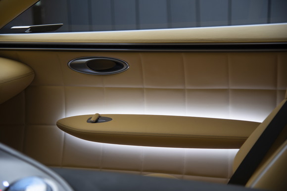 클래식 스포츠카 감성을 살린 시트, 도어 트림의 퀼팅 패턴 등 차량 실내 곳곳에 친환경적인 방식으로 제작된 가죽이 사용된 점도 특징적이다.