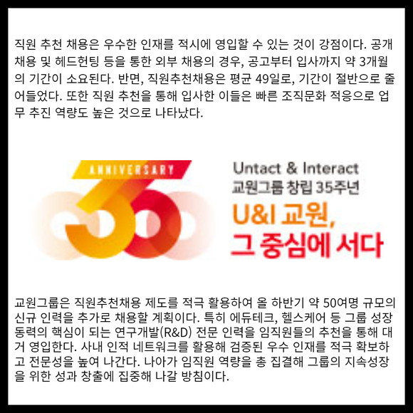 교원그룹 '직원추천채용' 확대로 우수 인재 영입 나서