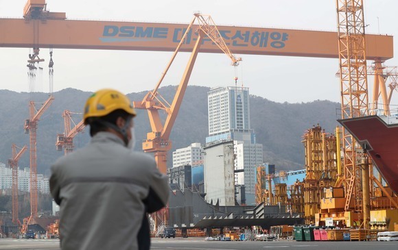 경남 거제시 대우조선해양 본사에서 숙련공이 일하는 모습. ⓒ 연합뉴스