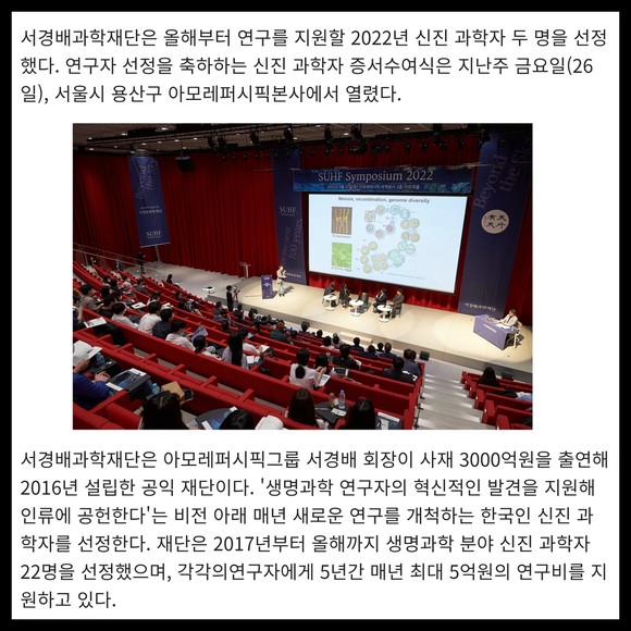 [카드] 서경배과학재단, 2022년 신진 과학자 선정