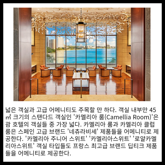 [프라임경제] 괌 특급호텔 '더 츠바키 타워'가 인기를 얻고 있다. 프리미어 호텔 그룹이 지난 2020년 궁극의 럭셔리를 표방하며 개관한 신규 호텔이라는 점이 최근 국내 소비 트렌드에 힘입어 이목을 끌고 있다는 분석이다.