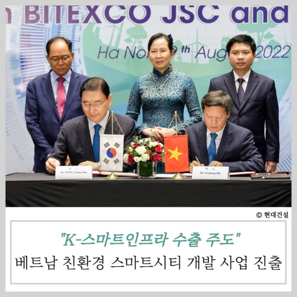 현대건설(000720)이 K스마트인프라 해외 수출을 주도하며 베트남 친환경 스마트 신도시 개발 사업에 나선다. 지난 29일(현지시간) 베트남 하노이에서 비텍스코사와 하남성이 추진하는 '하남 친환경 스마트 신도시 사업'에 한국 기업 최초 공동개발 협력계약을 체결한 것이다.
