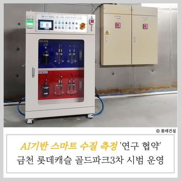 롯데건설이 'AI기반 스마트 수돗물 수질 측정 시스템'을 시범 운영해 입주민에게 공급되는 수돗물 수질 상태를 측정하고, 실시간 수질 정보를 제공한다.