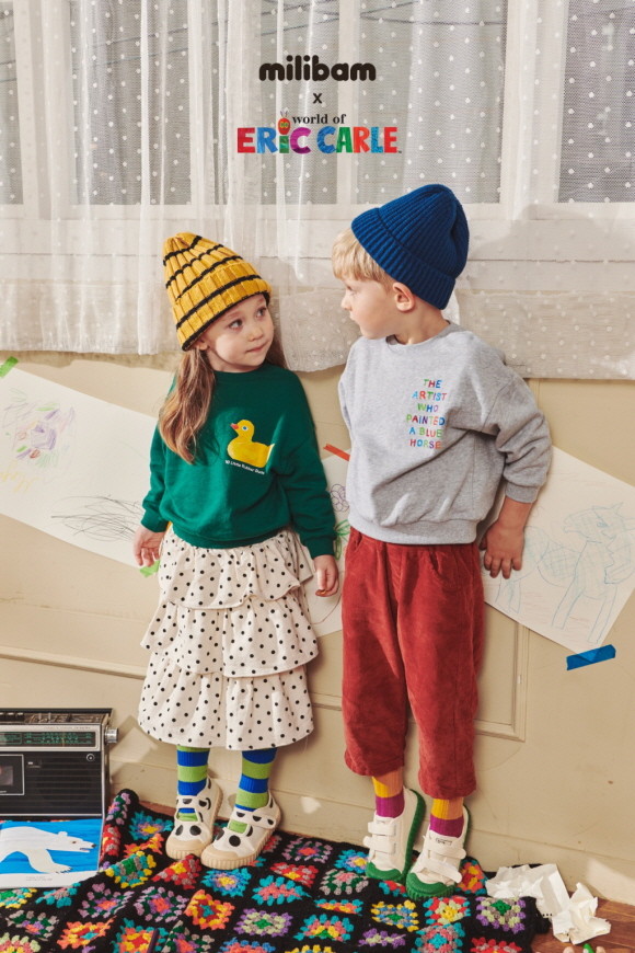 이랜드리테일에서 운영하는 키즈 트렌디 편집숍 밀리밤이 22년 FW시즌을 맞아 현대 그림책의 거장 에릭칼(Eric Carle)과 아트 패션 콜라보 상품을 출시했다. © 이랜드리테일