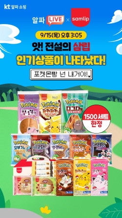 KT알파 쇼핑이 제과제빵의 명가 SPC삼립과 함께 인기몰이 중인 포켓몬빵부터 추억의 보름달빵까지 총 6종의 상품을 최대 19% 할인 판매하는 특별방송을 진행한다.