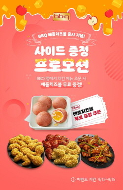 제너시스 BBQ그룹이 BBQ앱(자사앱)에서 치킨 메뉴 주문 고객에게 사이드 신메뉴인 '애플치즈볼'을 무료 증정한다.