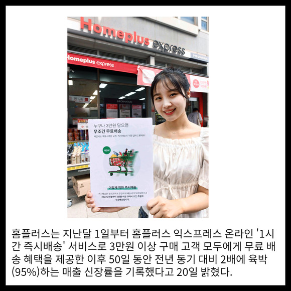 [카드] 홈플러스 '1시간 즉시배송' 배송료 없애니 매출 2배 "껑충"
