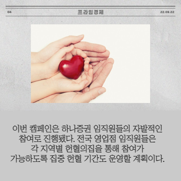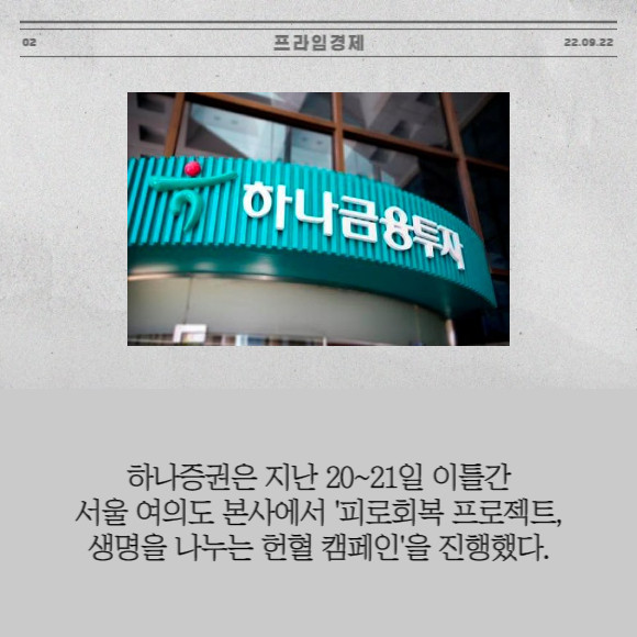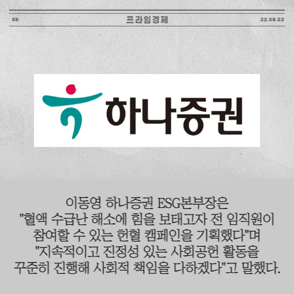 [프라임경제] 하나증권은 지난 20~21일 이틀간 서울 여의도 본사에서 '피로회복 프로젝트, 생명을 나누는 헌혈 캠페인'을 진행했다.