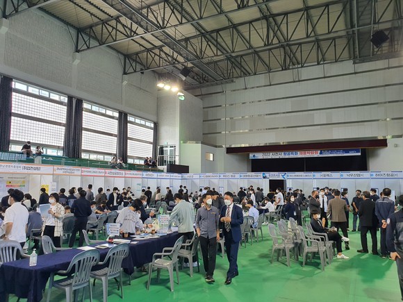 지난 22일 오후 1시부터 5시까지 사천체육관에서 열린 '2022년 사천시 항공특화 채용박람회'는 700여명의 학생과 구직자가 방문·취업을 위한 열기로 가득했다.