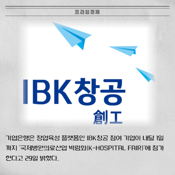[프라임경제] 기업은행 창업육성 플랫폼인 IBK창공(創工)이 내달 1일까지 '국제병원의료산업 박람회(K-HOSPITAL FAIR)'에 참가한다고 29일 밝혔다.