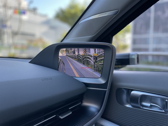 이외에도 디지털 사이드 미러는 문에 붙어 있는 듯했던 아이오닉 5와는 다르게 대시보드 양쪽 끝에 바짝 붙어 있다. 그로 인해 그때와는 다르게 시선을 크게 이동하지 않아도 되는 등 꽤 높은 편의성을 준다.