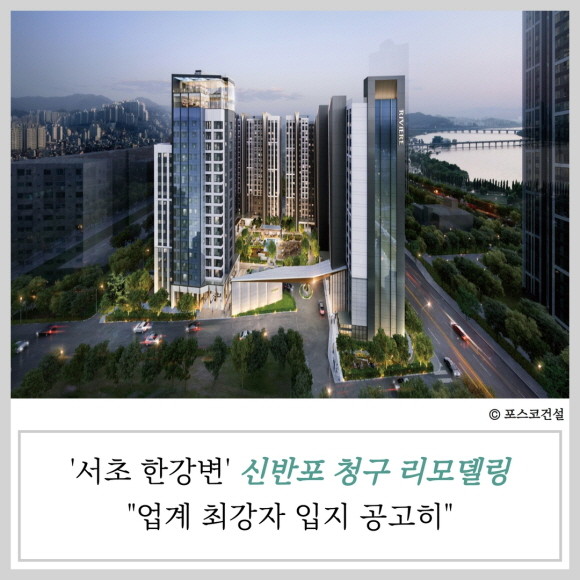 포스코건설이 지난달 29일 개최된 신반포 청구아파트 리모델링사업 시공자 선정 총회에서 시공자로 최종 선정됐다. 신반포 청구아파트는 교통·교육·문화 등 거주 인프라가 우수하고 한강변에 위치해 잠원동 일대 리모델링 핵심 단지로 손꼽힌다.