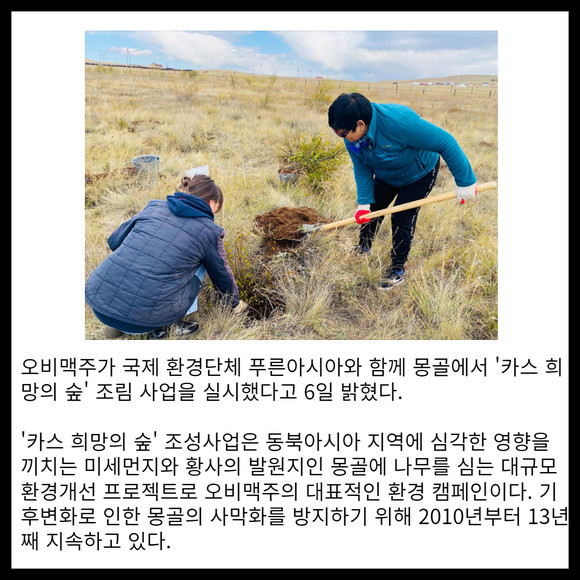 [카드] 오비맥주, 13년째 몽골서 '카스 희망의 숲' 조성
