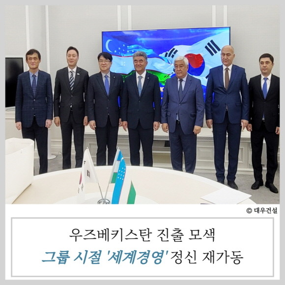 대우건설(047040)이 '대주주 중흥그룹' 정원주 부회장의 적극적 지원 바탕으로 우즈베키스탄 건설시장 진출을 모색하고 있다.