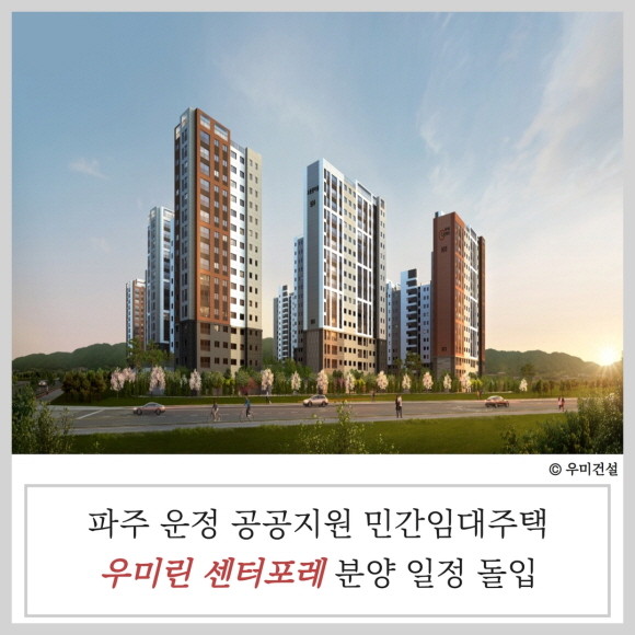 우미건설이 경기 파주 운정3지구 A-31블록에 공급하는 공공지원 민간임대 아파트 '파주 운정신도시 우미린 센터포레'에 대한 분양 일정에 돌입한다.