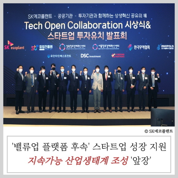 한편 SK에코플랜트는 스타트업을 비롯한 중소기업 기술 경쟁력 강화와 성장을 돕기 위해 상생혁신 플랫폼 구축에 앞장서고 있다. 정부, 공공기관과 투자기관 등 민관협력을 바탕으로 지속가능한 산업생태계 조성에 적극 나선다는 방침이다.