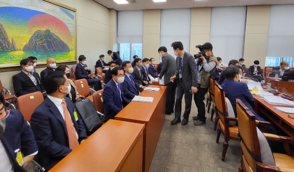 7일 국정감사 시작 전 증인들이 자리에 앉은 모습. = 박성현 기자