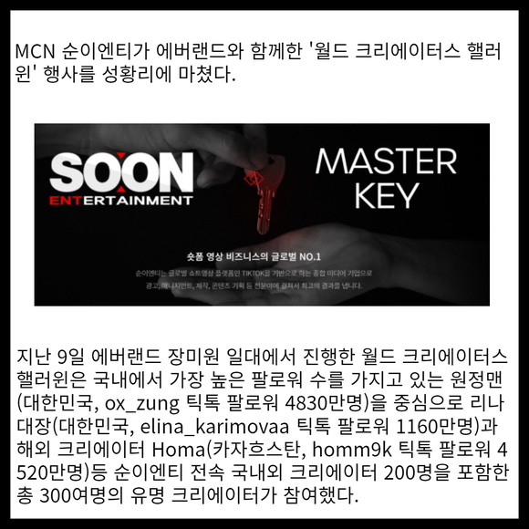 [프라임경제] MCN 순이엔티가 에버랜드와 함께한 '월드 크리에이터스 핼러윈' 행사를 성황리에 마쳤다.