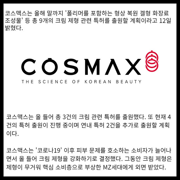 [카드] 코스맥스, MZ 취향 저격 '크림' 제형 특허 강화