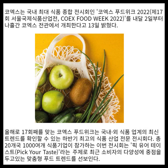 국내 최대 식품전 '코엑스 푸드위크 2022' 내달 2일 개막