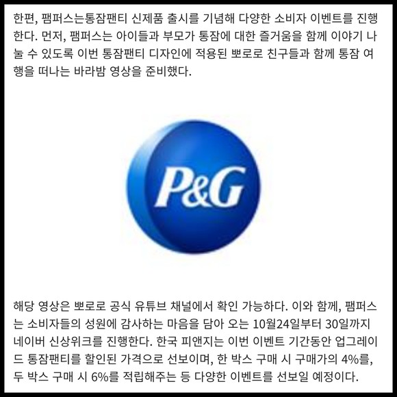 [카드] 한국 P&G '팸퍼스통잠팬티' 업그레이드 출시