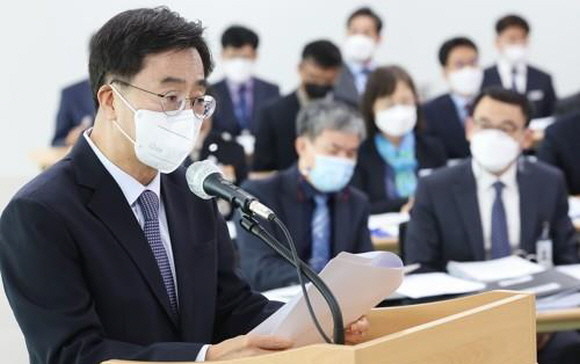 14일 국회 행정안전위원회 국정감사에서 국회의원 질의에 답변하고 있는 김동연 경기도지사 모습. ⓒ 연합뉴스