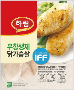 '하림 무항생제 IFF 닭가슴살'은 농림축산식품부로부터 무항생제 인증을 받은 농가에서 기능성 사료를 먹여 건강하게 키운 국내산 닭을 사용한 제품이다. 먹기 좋게 손질한 닭가슴살을 영하 35℃이하에서 40분간 개별 급속 동결하는 IFF(Individual Fresh Frozen) 기법으로 신선한 육질의 부드럽고 촉촉한 식감을 고스란히 살렸다.