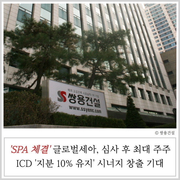 한편, ICD는 주식매각 이후에도 지분 10% 보유를 결정해 쌍용건설은 물론, 글로벌세아 그룹과도 우호적 관계를 맺고 비즈니스 파트너쉽을 유지할 것으로 알려졌다.