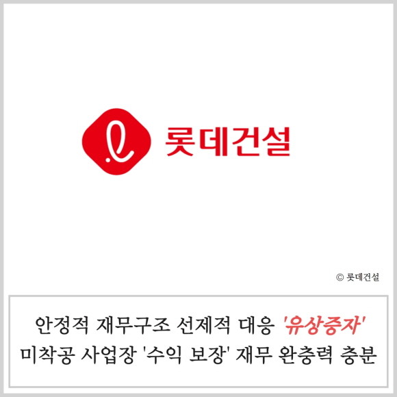 롯데건설 관계자는 "추진 사업장 대부분이 수도권 내 우수한 입지에 사업성이 뛰어나고, 롯데 그룹을 통해 2000억원 상당 유상증자도 의결한 상태"라며 "현재 PF 우발부채는 재무 완충력을 봤을 때 안정적이며, 부채비율 역시 150%대(상반기 기준)로 높지 않은 비율을 유지하고 있다"라고 설명했다.