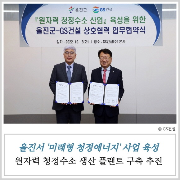 GS건설과 울진군은 이번 협약으로 탄소중립을 선도하고, 원자력 청정수소를 생산·실증할 수 있을 것으로 기대하고 있다. 또 울진군에서 추진하는 울진 원자력 수소 국가산업단지 인프라와 원자력 청정수소 생산실증 인프라 구축에 추진력을 얻을 전망이다.