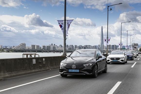 그렇게 더 뉴 EQS를 많이 닮은 더 뉴 EQE를 시승했다. 시승은 서울 성수에서 출발해 강원도 원주로 향하는 100㎞ 정도.