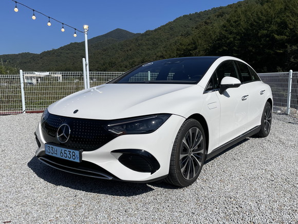 더 뉴 EQE는 진보적이고 스포티한 비지니스 세단의 외관을 갖췄다. = 노병우 기자