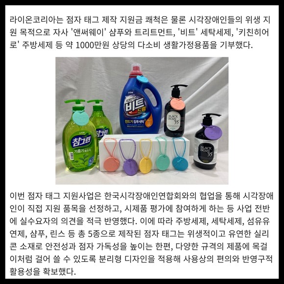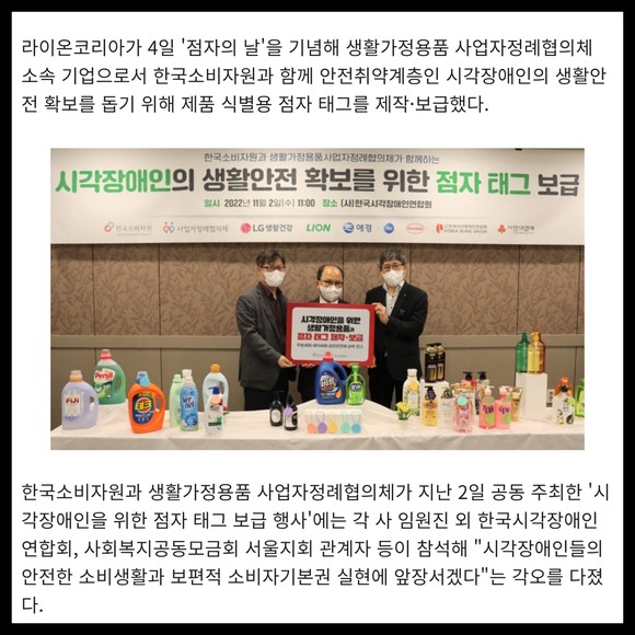 [프라임경제] 라이온코리아가 4일 '점자의 날'을 기념해 생활가정용품 사업자