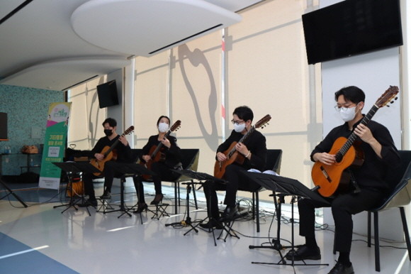 일산차병원 글로벌 다학제 암케어 센터는 서울대학교·한국예술종합학교 출신의 실력파 기타리스트들로 구성된 '비토 기타 앙상블' 팀을 초청해 암 환우를 위한 '기타둥둥 힐링 콘서트'를 개최했다.