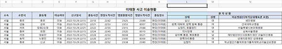 이태원 참사 이송 현황 사례 중 일부. = 신현영 더불어민주당 의원실 제공