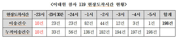 이송 198건 중 23시 이전 도착, 10건… "신속한 출동·현장 접근 중요성 때문에 발표"
