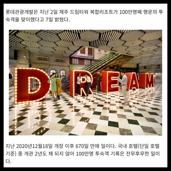 [카드] 제주 드림타워 복합리조트 투숙객 100만명 돌파