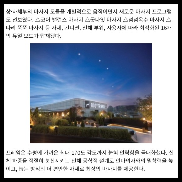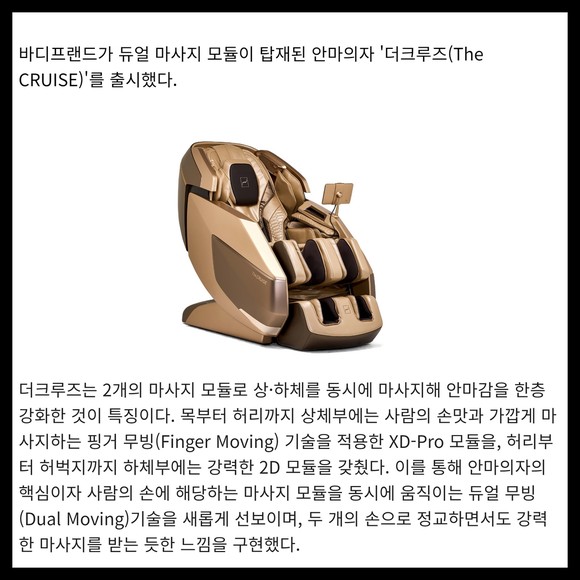 [카드] 바디프랜드 '듀얼 무빙' 마사지 적용 안마의자 '더크루즈' 출시