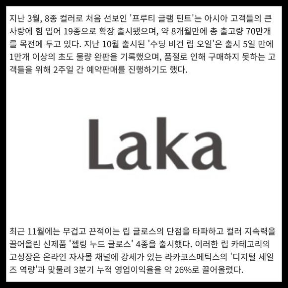 [카드] 라카코스메틱스, 립 카테고리 누적 매출 전년比 300% 성장