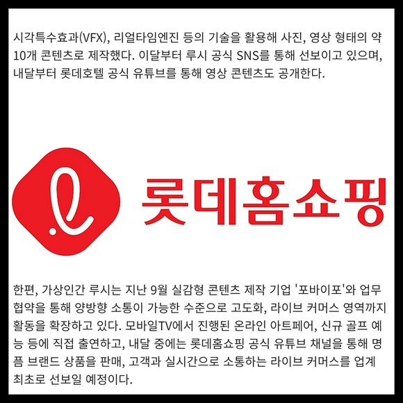 [카드] 롯데홈쇼핑, 가상인간 루시 롯데호텔 콘텐츠 홍보 모델 선정