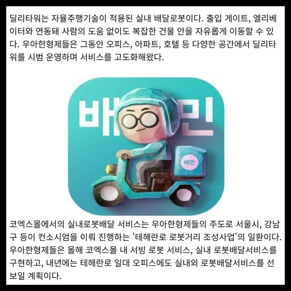 [카드] 배민 로봇, 코엑스몰서 배달 개시