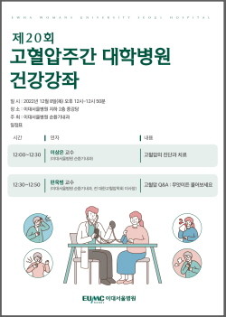 매년 12월 첫째 주는 한국고혈압관리협회와 대한고혈압학회가 고혈압의 중요성을 알리기 위해 제정한 '고혈압 주간'으로 이대서울병원은 이 시기에 맞춰 오프라인 강좌를 준비했다. 이번 강좌는 사전 신청없이 누구나 무료로 참여 가능하다.