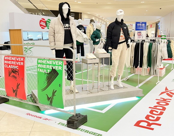 리복이 12월9일까지 스타필드 고양에서 팝업스토어를 열고, 인기 햄버거 브랜드 '폴트버거'와 협업한 이벤트를 진행한다. © LF